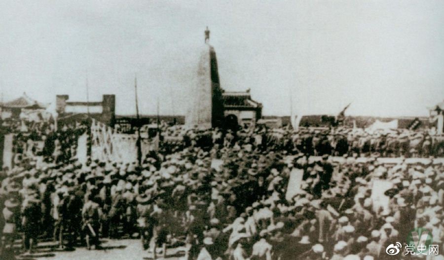 1931年6月,紅七軍到達中央革命根據地江西興國縣,編入彭德懷率領的紅三軍團。圖為當時會師的情形。