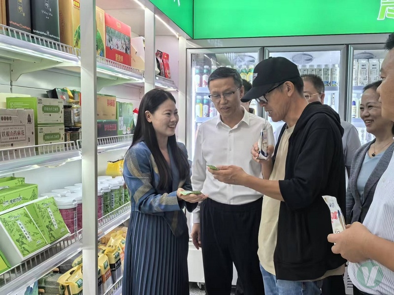 豫農(nóng)優(yōu)品農(nóng)投店展廳,俞敏洪先生被琳瑯滿目的河南優(yōu)質(zhì)農(nóng)產(chǎn)品深深吸引,詳細(xì)詢問世通黑豆花、鮮豆?jié){,愛廚脫紅衣花生油、芝麻香油,凱利來吐司面包、米餅、沙琪瑪,裕廚山藥粉、玉米糝、專用面粉等產(chǎn)品的營養(yǎng)價(jià)值及銷售情況。俞敏洪指出,“黑豆花這樣的好產(chǎn)品不愁賣,脫紅衣花生油自己從小就愛吃,條裝山藥粉攜帶方便、營養(yǎng)價(jià)值高”,對糧投集團(tuán)旗下產(chǎn)品給予高度肯定!